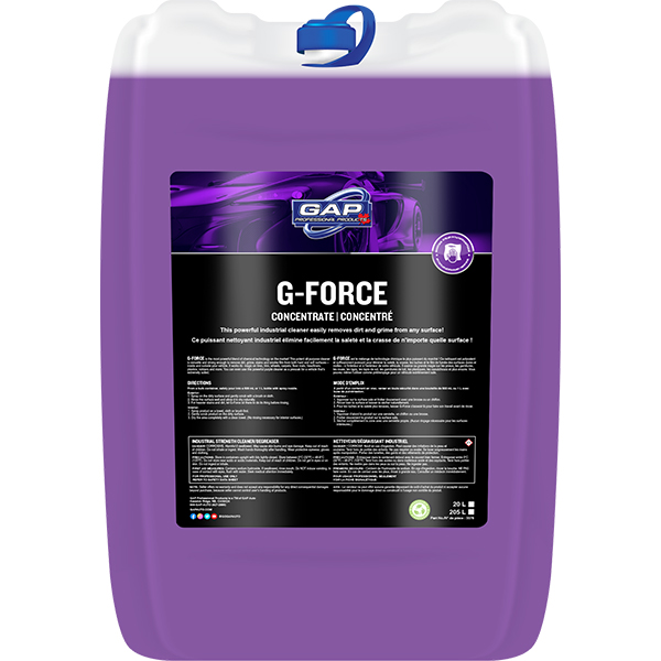 G-FORCE is the most powerful blend of chemical technology on the market! This potent all-purpose cleaner is versatile and strong enough to remove dirt, grime, stains and smoke film from both hard and soft surfaces – inside and outside your vehicle. It works its magic on tires, trim, wheels, carpets, floor mats, headliners, plastics, rubbers and more. You can even use this powerful purple cleaner as a presoak for a vehicle that’s extremely soiled.